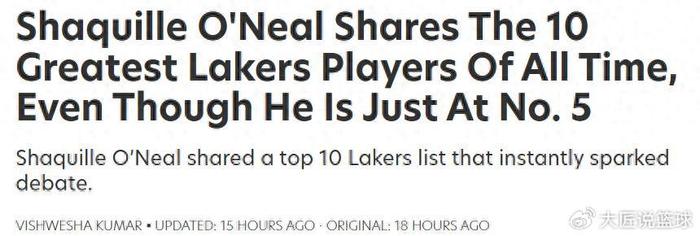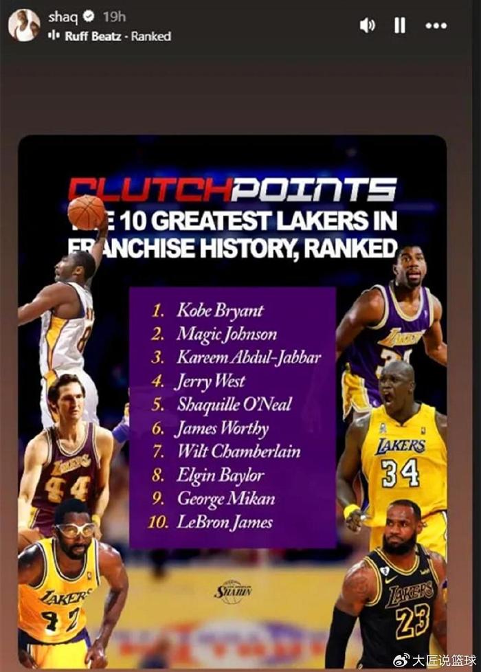 老詹压线入选!在休赛期深入之际,前湖人队巨星、现名嘴奥尼尔在社媒公开评选出湖人队史10大巨星,其中科比力压魔术师排第一。