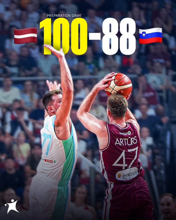 斯洛文尼亚开局抢占先机,首节一度31-18领先,但很快拉脱维亚还以15-4的攻击波。东契奇上半场17分钟独砍26分,帮助斯洛文尼亚半场领先2分。下半场比赛,拉脱维亚先发制人,直接打出一波18-0反超,斯洛文尼亚苦苦追分但未能逆转。