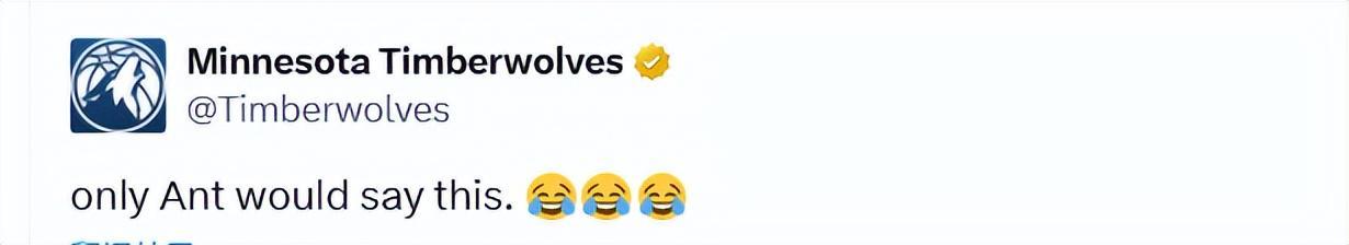 爱德华兹在社媒上晒出了一张与姚明的合影,并配文道:“我能隔扣姚明,向这位传奇巨星致敬。”森林狼官方社媒转发了爱德华兹的言论,写道:“只有爱德华兹敢这么说。”